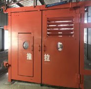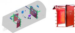 氣動無壓風門本身就能完成兩道風門之間的互鎖要求,但是純氣動風門與電氣結合的自動風門相比慢了半拍,這是由于氣體的流動速度遠遠低于光電的傳播速度造成的結果。電控氣動無壓平衡風門自動控制裝置的防爆箱里的PLC通過控制電磁閥來間接的控制氣缸的動作,在設計軟件程序里已經規定了兩道風門之間必須具有互鎖功能,也就是兩道無壓風門之間存在優先順序,根本不存在同時打開的條件。