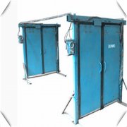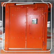 礦用風門正常焊接采用100*50槽鋼做門框,面板采用2mmQ235鋼板雙面焊接,中間是40*40的方鋼作為骨架,尺寸超過2米的采用120*60槽鋼做門框,50*50的方鋼作為骨架。