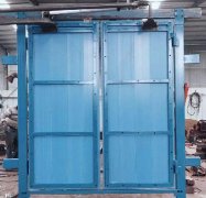 礦用風門正常焊接采用100*50槽鋼做門框,面板采用2mmQ235鋼板雙面焊接,中間是40*40的方鋼作為骨架,尺寸超過2米的采用120*60槽鋼做門框,50*50的方鋼作為骨架。