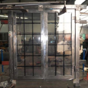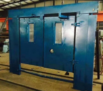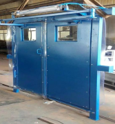 礦用風門正常焊接采用100*50槽鋼做門框,面板采用2mmQ235鋼板雙面焊接,中間是40*40的方鋼作為骨架,尺寸超過2米的采用120*60槽鋼做門框,50*50的方鋼作為骨架。